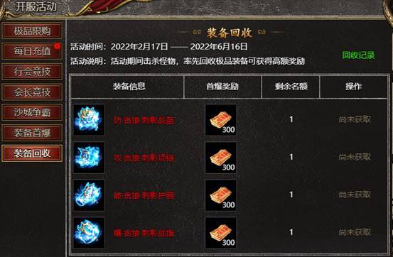活动六、装备回收,白嫖灵符,兄弟们冲啊!